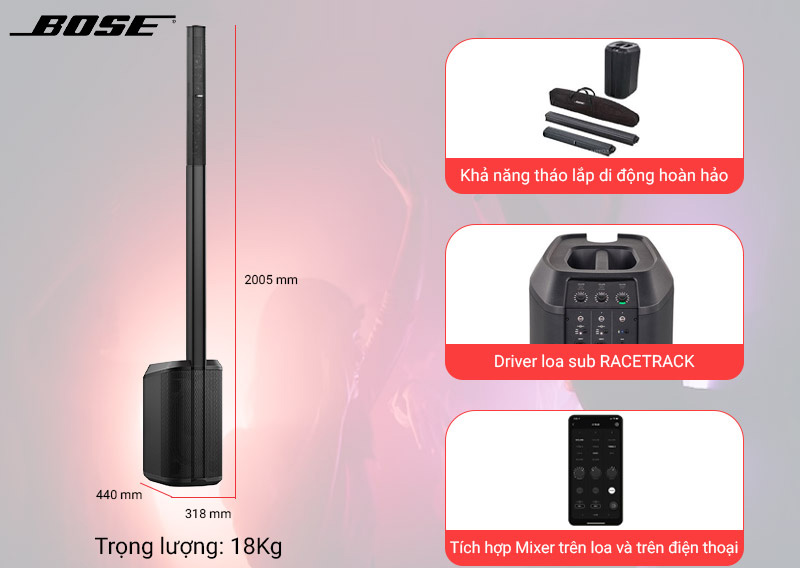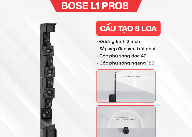 Loa Bose L1 Pro 8 thường không phù hợp để hỗ trợ các không gian biểu diễn lớn. Tuy nhiên, với các phòng karaoke có diện tích từ 20 đến 60m2 thì đây là chiếc loa hát karaoke ấn tượng nhất. L1 Pro8 đảm bảo âm thanh của dải trầm xuống 45Hz, công suất lớn, trọng lượng nhẹ. Biểu diễn trong sân nhà, phòng karaoke gia đình hay các phòng karaoke chuyên nghiệp đều rất ổn định.