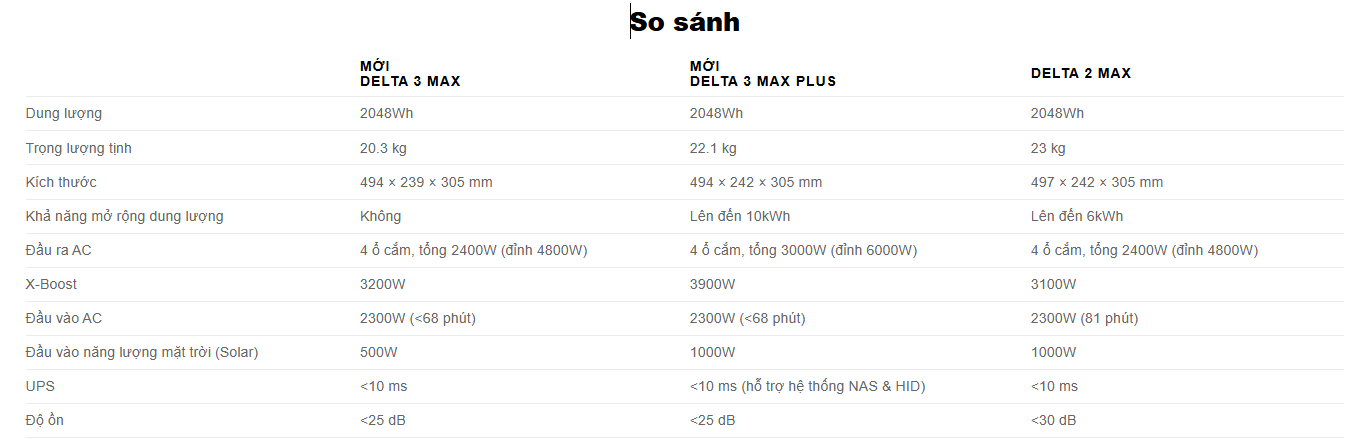 Lưu ý: Delta 3 Max không mở rộng thêm dung lượng được