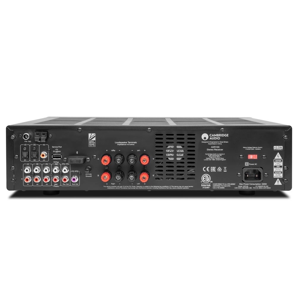 AXR100 là chiếc amply cao cấp đến từ thương hiệu Cambridge Audio đình đám từ Anh Quốc. Với thiết kế bắt mắt, sang trọng, công suất 100W/CH và hàng loạt công nghệ tiên tiến như Đài FM/AM, cổng phono, cổng ra loa siêu trầm (hoàn thiện hệ thống dàn 2.1), đầu vào 3,5 mm, Bluetooth,.. Thiết bị âm thanh chất lượng cao từ Cambridge hiện đang rất được yêu thích sử dụng tại Việt Nam.