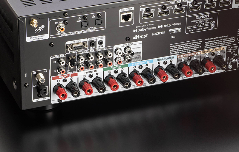 Bên cạnh phương thức kết nối không dây, amply AVR-X2800H còn được trang bị đầy đủ các cổng ngõ có dây ấn tượng nằm ở phía sau thiết bị. Người dùng có thể kết nối nguồn nhạc từ TV hay bất kỳ các nguồn âm thanh nào khác thông qua các cổng kết nối analog bao gồm: HDMI In / Out, Analogue In, Optical / Coaxial, AM/FM Tuner, Subwoofer Out và cổng Phono (MM) để bạn kết nối đầu đĩa than dễ dàng.