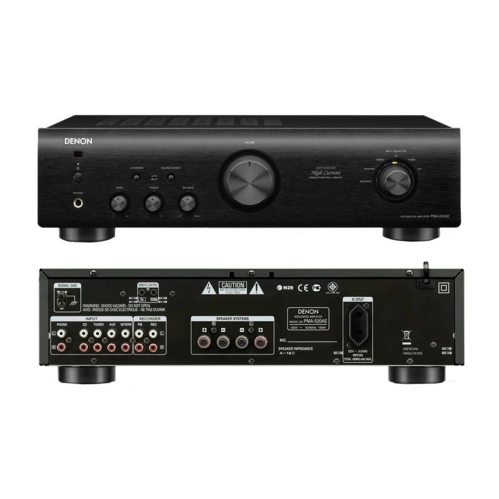+ Amply Denon PMA-520AE có công suất lên tới 45W với loa có trở kháng 8 ohm và 70W với các loa có trở kháng 4 ohm