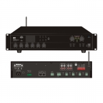Mặt sau là các cổng kết nối AUX, cổng mạng, cổng MIC, các đường line và đặc biệt còn trang bị thêm cổng kết nối riêng biệt dành cho hệ thống báo cháy, sơ tán khẩn cấp EMC, trong trường hợp khẩn cấp sẽ tự bật chế độ ưu tiên: MUTE>EMC>REMOTE MIC> MIC1-4>MIC5-6 LINE5-6.