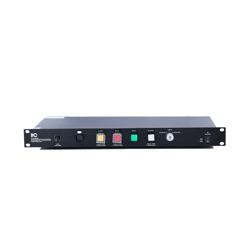 Mặt trước của ITC TF-24262 có các nút bấm như Alert, Evac,.. dùng để điều chỉnh thông báo khẩn cấp với đường truyền ổn định nhất, tích hợp thêm ổ cắm microphone cho hệ thống PA.
