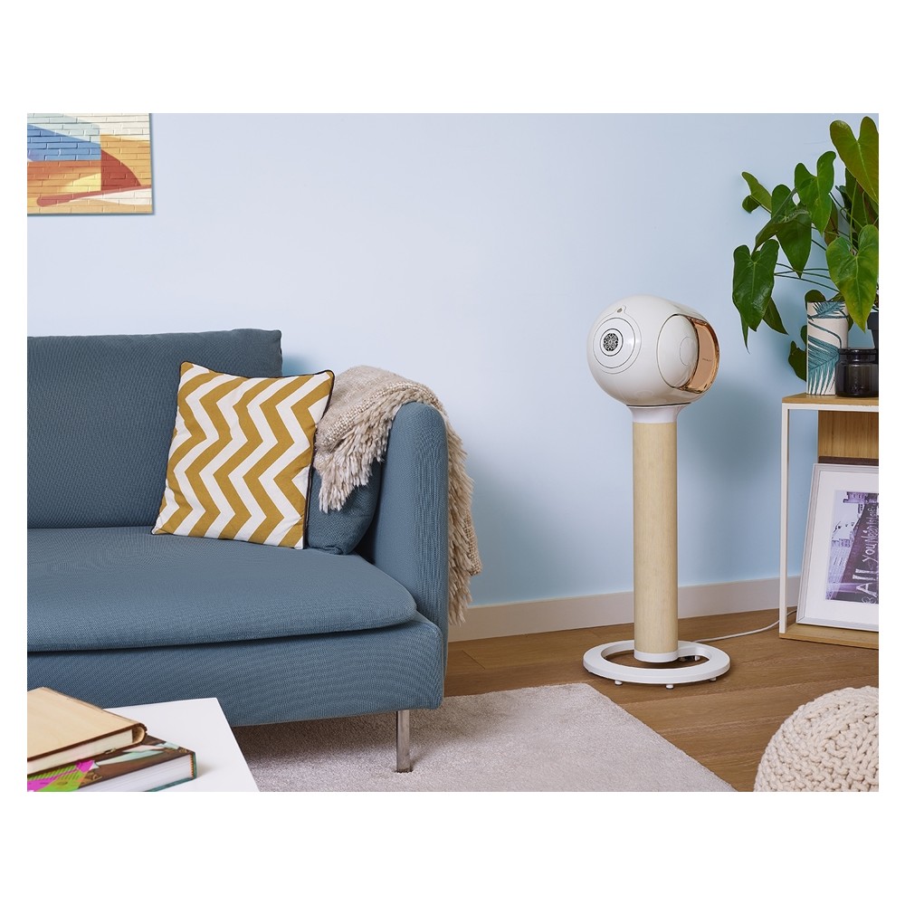 Chân gắn Devialet Tree có ngoại hình tối giản, toàn bộ sản phẩm có màu vân gỗ nhìn rất thân thiện với môi trường. Thiết kế vừa mang vẻ hiện đại và tự nhiên, có thể phù hợp đặt trong mọi không gian nội thất hiện nay. Là 1 sản phẩm thiết kế riêng biệt cho dòng Phantom Premier, chân gắn Tree Wood có độ chính xác tuyệt đối khi lắp ghép với loa. Bên cạnh đó chân gắn này còn có hệ thống tản nhiệt được tích hợp bên trong. Giúp cho loa Phantom khi hoạt động được tối ưu hơn, mang lại hiệu quả cao khi chơi nhạc lâu dài. Bên dưới đế tròn được trang bị các chân cao su êm ái giúp loa đứng vững chãi hơn. Khi chơi nhạc với mức âm lượng và bass lớn sẽ giúp loa không bị rung lắc hoặc ảnh hưởng.
