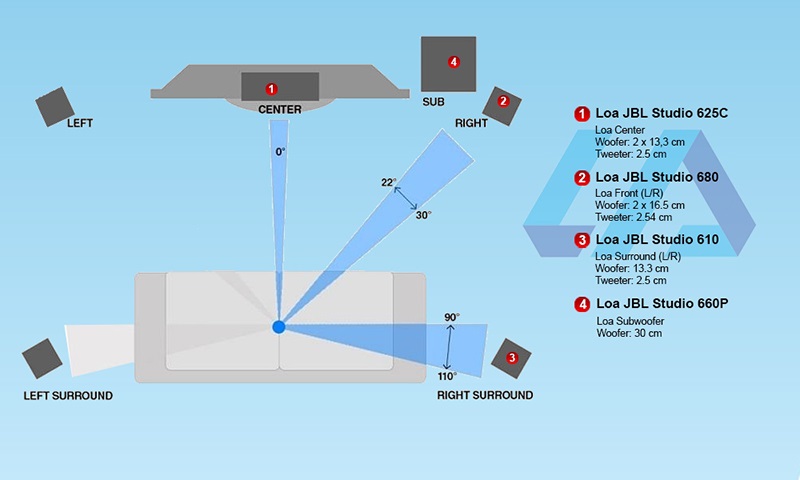 Bảng giá chi tiết của dàn âm thanh xem phim 5.1 JBL, Denon LA300.