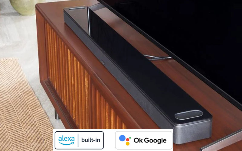 Một trong những tính năng nổi bật của Bose Premium Soundbar là khả năng điều khiển thông minh bằng giọng nói thông qua Amazon Alexa. Tích hợp công nghệ Voice4Video™ độc quyền của Bose, bạn không chỉ có thể điều khiển loa bằng giọng nói mà còn điều khiển cả TV, hộp truyền hình cáp hoặc vệ tinh chỉ bằng các lệnh đơn giản. Điều này giúp bạn dễ dàng chuyển đổi giữa các thiết bị và điều chỉnh các kênh mà không cần dùng đến nhiều remote khác nhau.