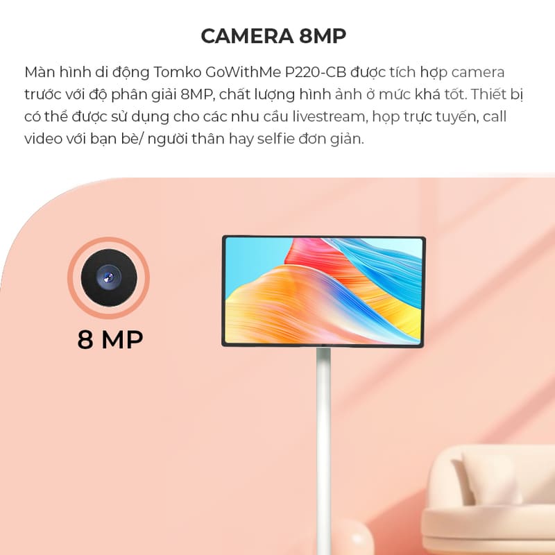 Tomko GoWithMe P220-CB là màn hình di động 22 inch Full HD với cảm ứng hồng ngoại, loa kép, camera 8MP và kết nối linh hoạt. Đây là lựa chọn hoàn hảo cho học tập, làm việc và giải trí hiện đại.