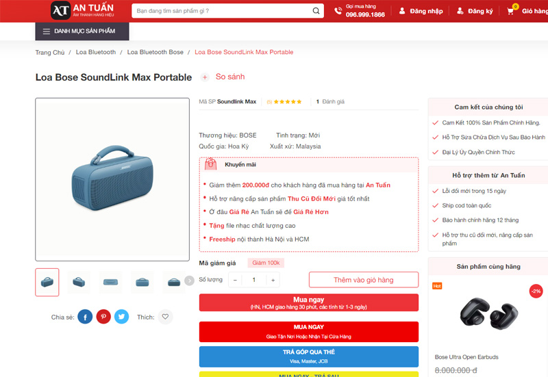 Tóm lại, Bose SoundLink Max là một loa Bluetooth di động hàng đầu, kết hợp sự bền bỉ, chất lượng âm thanh ấn tượng và thời lượng pin lâu dài, là lựa chọn tuyệt vời cho những người yêu âm nhạc cần một loa đa năng và mạnh mẽ.