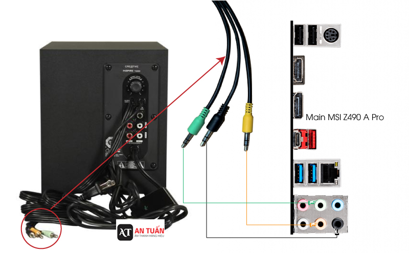 Lưu ý: Với main hỗ trợ 5.1 và 7.1 thì có thể gắn loa 2.1. Tuy nhiên, với main chỉ hỗ trợ âm thanh 2.1 thì bạn không thể gắn âm thanh 5.1 và 7.1 được. Khi đó bạn phải mua thêm một chiếc sound card để hỗ trợ chuyển đổi âm thanh. (Vũ Trang Computer có bán sản phẩm này)
