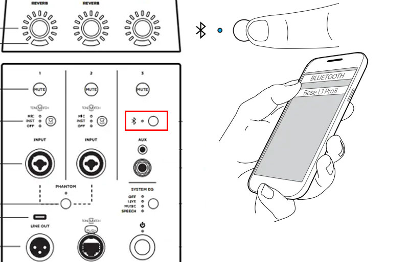 Trên điện thoại hoặc thiết bị di động, bật Bluetooth và tìm tên loa “Bose L1 Pro 8” hoặc “Bose L1 Pro 16” để kết nối.