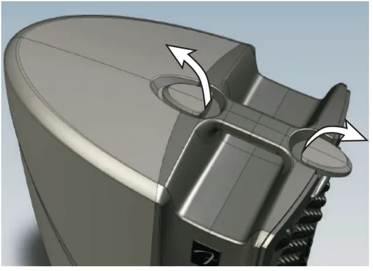 Lật mở chốt trên tủ phía trên Passport, sau đó nhẹ nhàng tháo tủ loa ra khỏi phần bộ trộn điện. Đảm bảo tủ được tháo gỡ an toàn trước khi tiếp tục.
