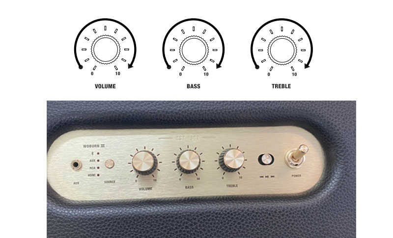 Bass & Treble: Bạn có thể tùy chỉnh âm bass và treble bằng cách xoay các nút điều chỉnh tương ứng. Điều này giúp bạn cá nhân hóa trải nghiệm âm thanh, tăng hoặc giảm độ sâu của âm bass và sự sáng của âm treble.