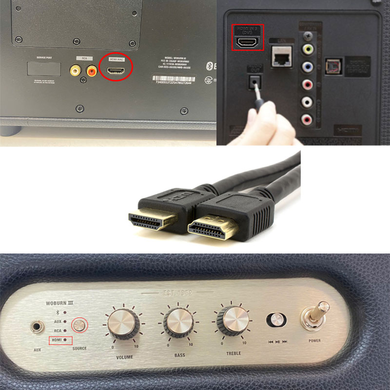Cổng HDMI ARC: Để kết nối loa với TV, sử dụng cổng HDMI ARC. Đảm bảo rằng cả loa và TV đều được cấu hình để hỗ trợ âm thanh qua HDMI ARC.