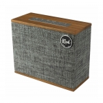 Loa được thiết kế với đường vân gỗ chất liệu MDF veneer bao quanh đậm nét cổ điển, truyền thống. Loa được thiết kế với dạng hình vuông nhỏ gọn, vừa tay cần với độ dày chỉ 6.7cm, chiều cao 12.7cm và chiều rộng 15.2cm. Đặc biệt, loa được trang bị một tấm lưới phủ với chất liệu vải thêu dệt cao cấp, tỉ mỉ làm tôn lên vẻ đẹp cổ điển sang trong cho sản phẩm. Kích thước siêu nhỏ gọn cho phép bạn dễ dàng di chuyển, mang loa theo mọi nơi như một món hành lý nhỏ gọn. Cổng kết nối đơn giản, dễ dàng cho phép người dùng tự do kết nối qua cổng Bluetooth. Cùng với đó, jack kết nối AUX 3.5mm cũng giúp bạn dễ dàng kết nối những thiết bị điện tử khác nhau một cách ổn định và chất lượng nhất. Âm thanh qua loa Heritage Groove luôn được đảm bảo độ chân thật, sống động khi kết nối với mọi thiết bị khác nhau. Đặc biệt hơn, chiếc loa không dây này còn được tích hợp sẵn micro cho phép bạn nhận và thực hiện cuộc gọi trực tiếp không cần đến tai nghe.