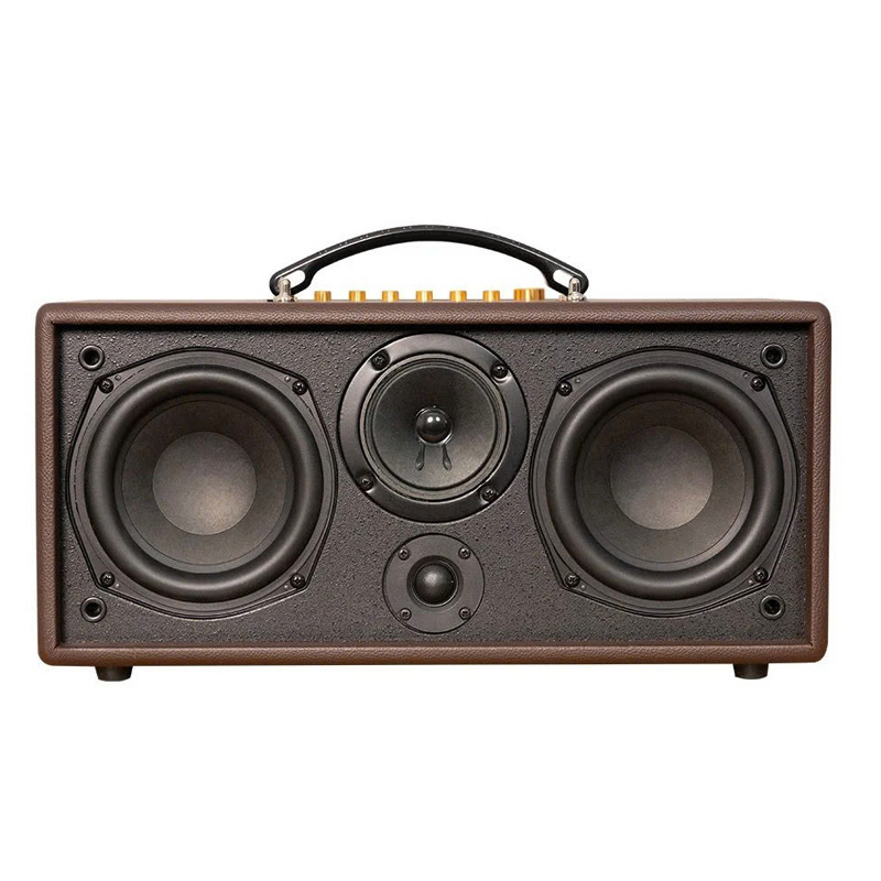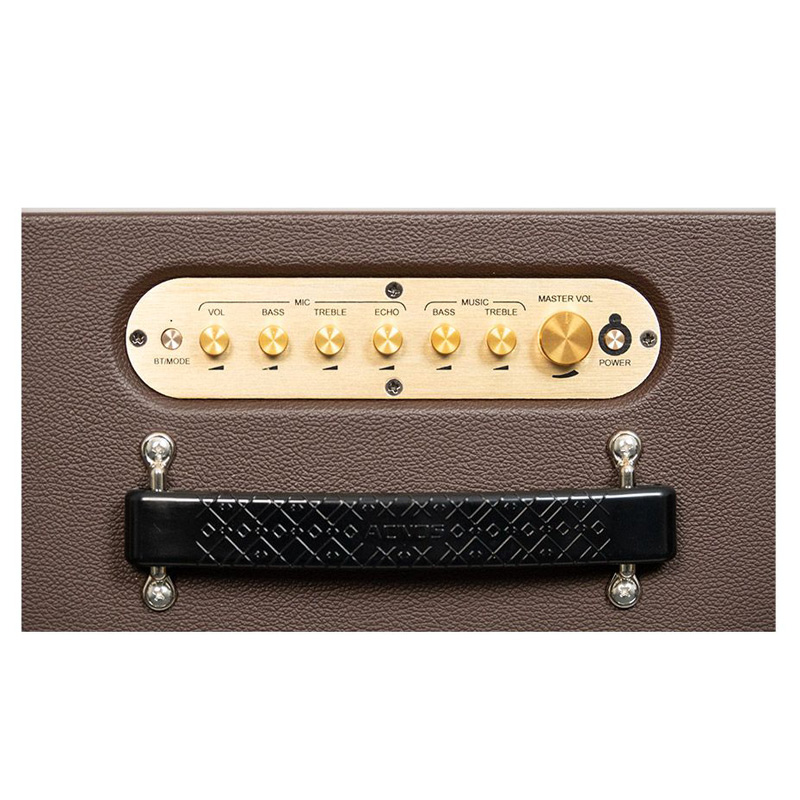 Loa Acnos CS366PLUS sở hữu thiết kế cổ điển với thùng loa làm từ chất liệu gỗ bọc da màu nâu, mang đến vẻ đẹp sang trọng và thanh lịch. Màu lưới đen sọc nâu giúp bảo vệ loa khỏi bụi bẩn và va đập, đồng thời làm tăng thêm tính thẩm mỹ. Bên trên là các nút vặn màu vàng đồng tạo điểm nhấn tinh tế cho loa, mang đến sự sang trọng cho không gian sử dụng. Với kích thước 405 x 185 x 200 mm và phần quai xách tiện lợi, bạn có thể dễ dàng di chuyển loa đến bất cứ đâu, từ các buổi dã ngoại ngoài trời đến những bữa tiệc tại nhà.