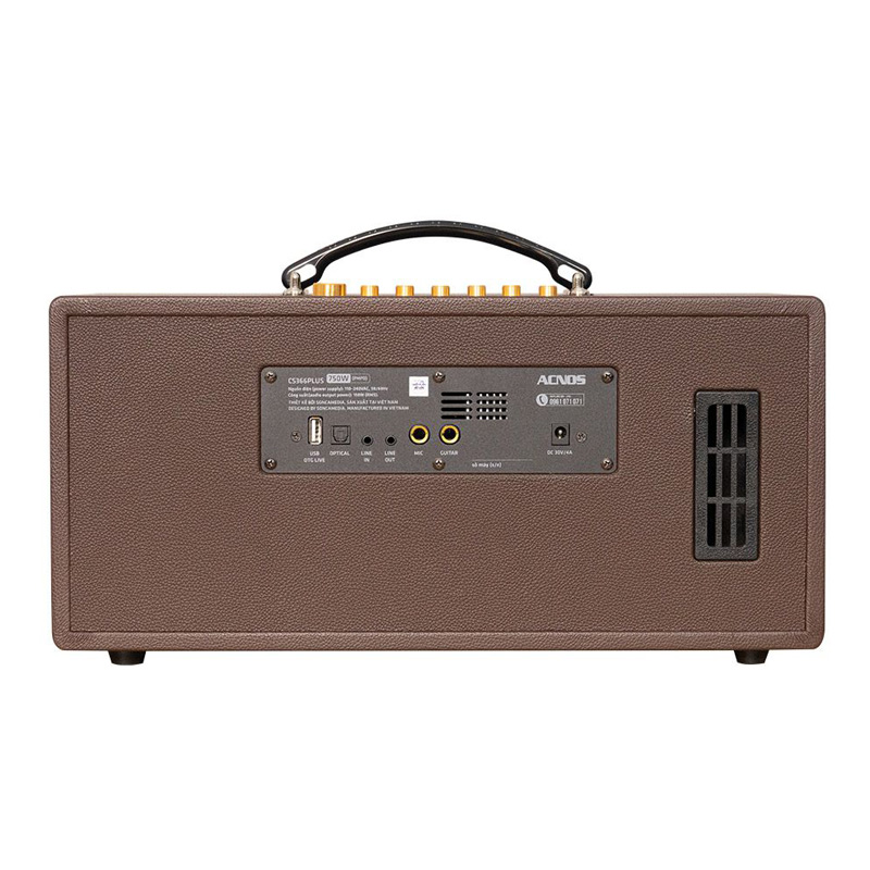 Loa CS366PLUS có cổng kết nối OPTICAL, cho phép truyền tải âm thanh chất lượng cao từ Smart TV một cách dễ dàng. Bạn chỉ cần sử dụng cáp quang để kết nối loa với tivi và thưởng thức âm thanh sống động mà không gặp hiện tượng mất tín hiệu. Ngoài ra, loa còn có các cổng USB OTG LIVE, LINE IN, LINE OUT, MIC, và GUITAR, giúp kết nối với nhiều thiết bị khác nhau, phù hợp cho cả việc livestream, phát nhạc từ điện thoại, hoặc kết nối với nhạc cụ khi cần thiết.