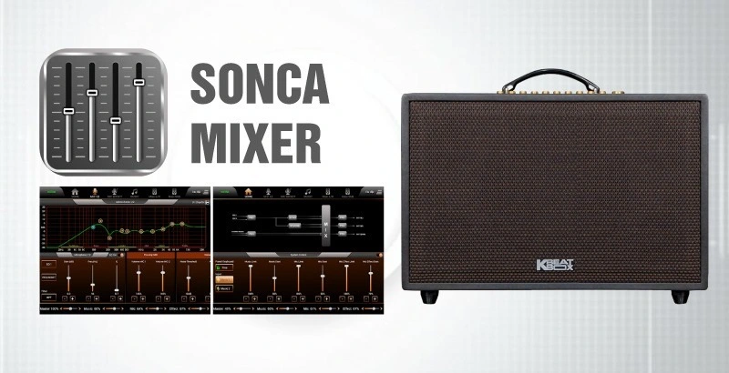 Ứng dụng SONCA MIXER cho phép điều chỉnh chi tiết âm lượng nhạc, micro, vang và các hiệu ứng theo sở thích, phù hợp với từng không gian biểu diễn.