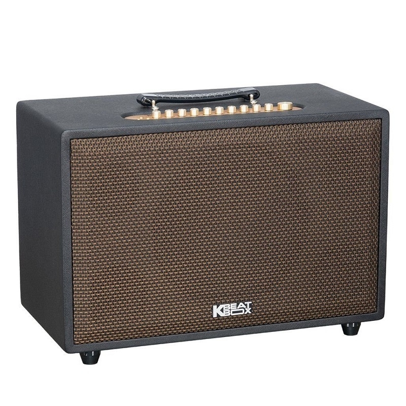 Loa mang dáng hình hộp vuông vắn với phong cách tối giản, mặt trước là lưới ê căng bảo vệ củ loa, phía trên bố trí bảng điều khiển cùng quai xách chắc chắn, mặt sau tích hợp đầy đủ các cổng kết nối thông dụng. Kích thước 490 x 335 x 250 mm cùng trọng lượng 19,5kg mang lại cảm giác chắc chắn, trong khi quai xách giúp di chuyển tiện lợi. Thùng gỗ MDF bọc da PU cao cấp kết hợp lưới ê căng dệt bền bỉ, chống ẩm nhẹ, dễ vệ sinh và chịu va đập tốt. Tông màu nâu – xám nền nã giúp loa dễ dàng hòa hợp với mọi không gian, vừa là thiết bị âm thanh, vừa là món đồ trang trí tinh tế.