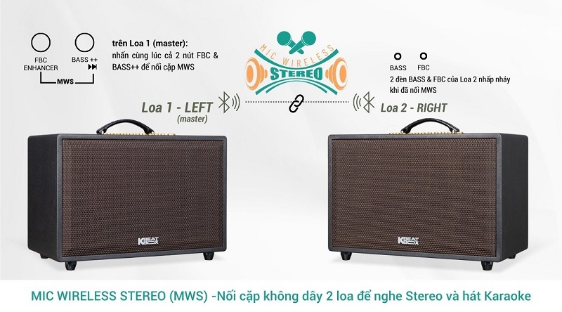 Chế độ ghép đôi TWS cho phép kết nối hai loa CS3800 Pro không dây, tạo hệ thống stereo mạnh mẽ.