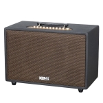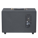 Loa mang dáng hình hộp vuông vắn với phong cách tối giản, mặt trước là lưới ê căng bảo vệ củ loa, phía trên bố trí bảng điều khiển cùng quai xách chắc chắn, mặt sau tích hợp đầy đủ các cổng kết nối thông dụng. Kích thước 490 x 335 x 250 mm cùng trọng lượng 19,5kg mang lại cảm giác chắc chắn, trong khi quai xách giúp di chuyển tiện lợi. Thùng gỗ MDF bọc da PU cao cấp kết hợp lưới ê căng dệt bền bỉ, chống ẩm nhẹ, dễ vệ sinh và chịu va đập tốt. Tông màu nâu – xám nền nã giúp loa dễ dàng hòa hợp với mọi không gian, vừa là thiết bị âm thanh, vừa là món đồ trang trí tinh tế.