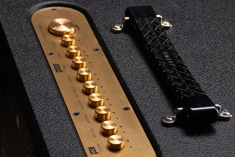 Bảng điều khiển được bố trí ngay trên thân loa, cho phép bạn tùy chỉnh âm lượng tổng, âm lượng micro, chuyển chế độ phát nhạc, đổi bài, tạm dừng hoặc điều chỉnh bass – treble nhanh chóng. Cách bố trí hợp lý giúp người dùng dễ làm quen và sử dụng linh hoạt trong mọi tình huống.