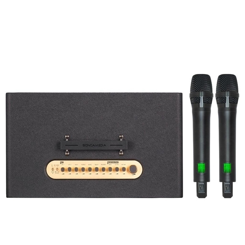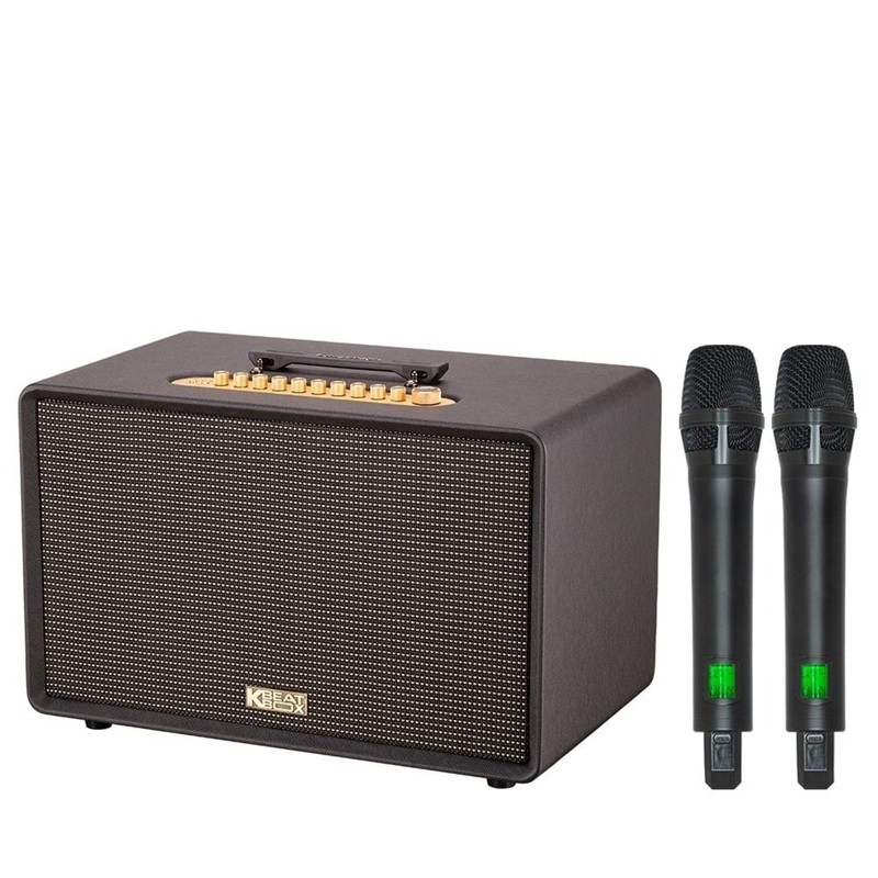 Sản phẩm đi kèm hai micro UHF không dây cao cấp, cho khả năng bắt sóng ổn định và tái tạo giọng hát rõ ràng. Micro tích hợp cảm biến chuyển động tự động bật khi cầm lên và tắt khi đặt xuống để tiết kiệm pin. Khi micro bị rơi, hệ thống sẽ tự ngắt tín hiệu nhằm tránh sốc âm và bảo vệ thiết bị.