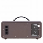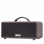 Thiết kế là từ ghỗ MDF bền và chắc bên phía trong, ở ngoài là một lớp da dày màu nâu đất sẫm tăng phần sang trọng cho bộ loa. Với kiểu dáng nhỏ gọn người dùng có thể để đặt ở mọi vị trí trong không gian ngôi nhà bạn hoặc có thể sách trên tay như chiếc vali nhỏ di chuyển mà vẫn có thể ca hát hoặc thưởng thức những bản nhạc mà mình yêu thích