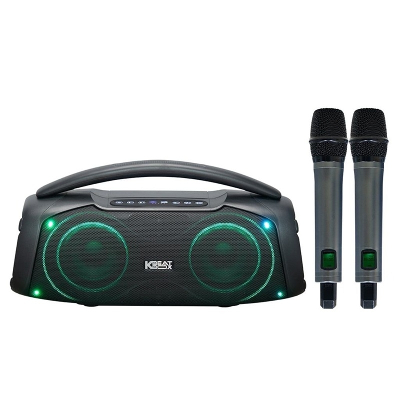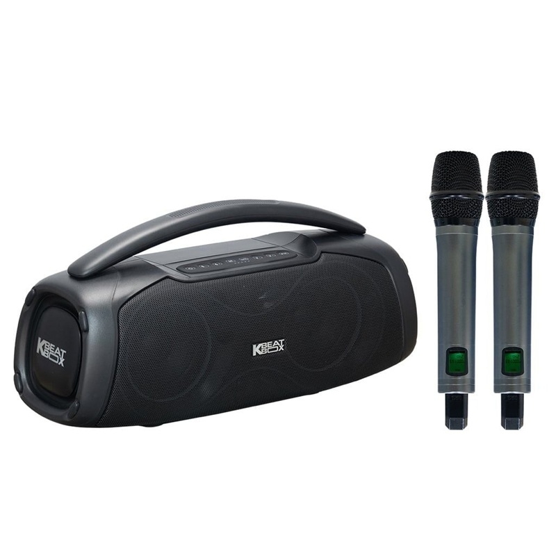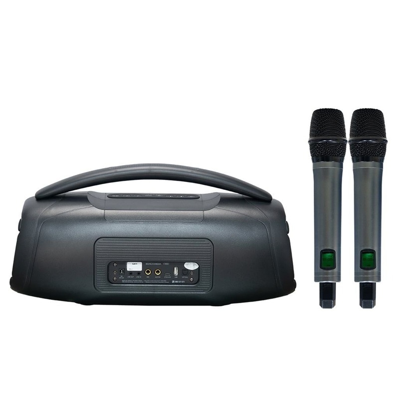 Đi kèm với loa là bộ đôi micro không dây UHF cao cấp, cho khả năng hoạt động ổn định, độ nhạy tốt và bắt giọng rõ ràng. Thiết kế micro gọn nhẹ, dễ cầm nắm giúp người dùng thoải mái sử dụng trong thời gian dài mà không bị mỏi tay. Việc tích hợp sẵn micro giúp hệ thống trở nên tiện lợi và sẵn sàng sử dụng ngay, đặc biệt phù hợp cho các buổi tụ họp gia đình, bạn bè hoặc dã ngoại.