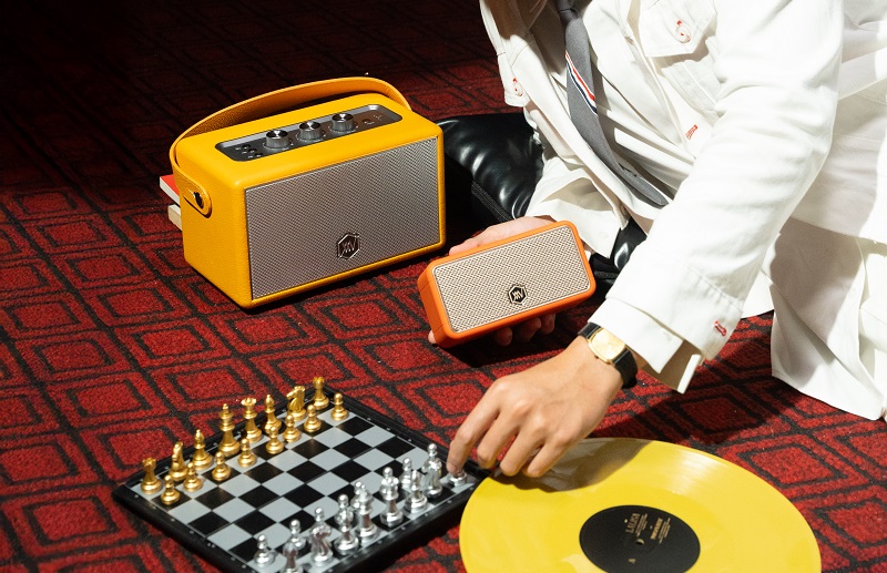 Kích thước chỉ 162 x 84 x 88 mm cùng trọng lượng 760g, W39 dễ dàng đặt gọn trên kệ sách hoặc mang theo khi đi dạo phố, cà phê. Thân loa làm từ gỗ chắc chắn, bọc da cao cấp, phối hợp với mặt ê-căng thép độc đáo vừa tăng độ bền vừa tạo điểm nhấn thị giác.