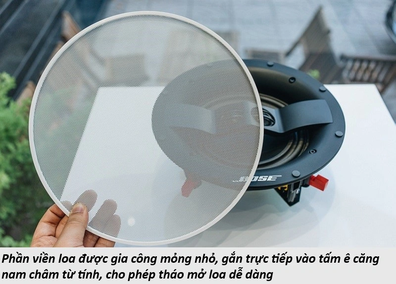 Vỏ loa được làm từ kim loại cao cấp, chắc chắn và bền bỉ, đảm bảo khả năng chịu được các yếu tố môi trường như độ ẩm cao. Phần viền siêu mỏng của loa được gắn trực tiếp với tấm ê căng không rỉ, giúp việc phun sơn trở nên đơn giản và tạo sự hài hòa với mọi phong cách thiết kế nội thất.
