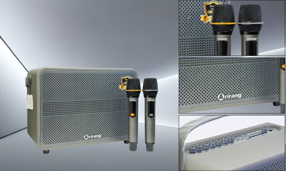 Bên cạnh loa, sản phẩm còn đi kèm 2 micro không dây UHF cao cấp. Micro được thiết kế với vỏ nhôm chắc chắn, khả năng chống nhiễu, chống hú rè và hút âm tốt, cùng phạm vi hoạt động rộng, giúp mang đến âm thanh nhẹ nhàng, bay bổng và tạo cảm giác tự tin cho người sử dụng trong các buổi karaoke chuyên nghiệp.