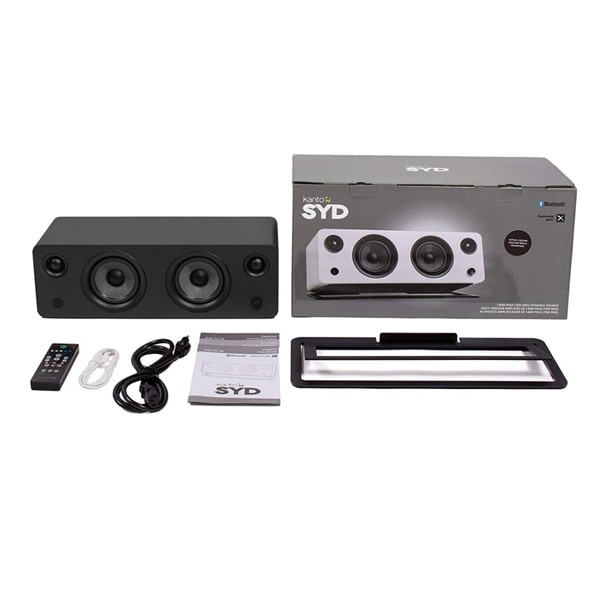 Bluetooth với công nghệ aptX, hoặc chơi âm thanh chất lượng cao. Hoặc cũng có thể trình diễn âm thanh chất lượng cao qua TV qua cổng Optical TOSLINK. Ngoài ra, người dùng còn có thể sử dụng với đầu đĩa than nhờ phono preamp tích hợp. Đi kèm với loa là chiếc Remote đầy đủ các nút tùy chỉnh. Hơn nữa Kanto SYD còn có 1 chiếc đế giúp điều chỉnh loa ngửa lên với góc 16 độ giúp âm thanh truyền đi cao hơn.