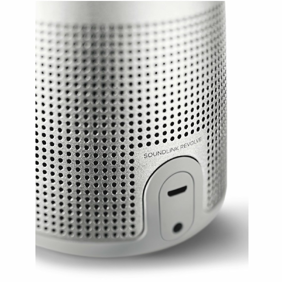 Loa Bose SoundLink Revolve + cho khả năng phát âm thanh 360 độ, mang đến chất lượng đồng đều ở mọi vị trí nghe nhạc, các nút điều khiển được đặt trên đỉnh loa với các tuỳ chọn âm lượng.