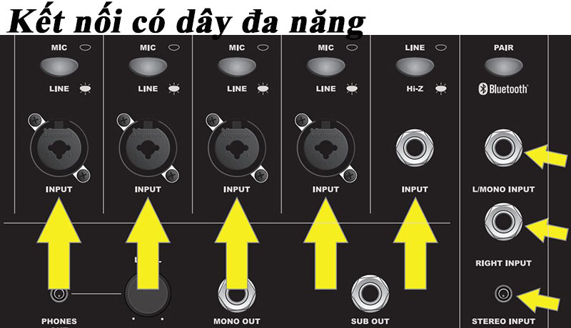 Bảng điều khiển mặt trước của loa tích hợp các nút điều chỉnh cần thiết như âm lượng tổng, mức tín hiệu, điều chỉnh cho 7 cổng kết nối (nhạc cụ, micro), cùng với các nút sub out, bluetooth, mono đầu ra và mức độ kiểm soát. Bảng điều khiển mặt sau lại có các nút điều chỉnh nguồn điện, công tắc vôn, công tắc bật/tắt và đầu ra loa, hỗ trợ người dùng cắm nguồn điện 230V phù hợp với dòng điện tại Việt Nam. Với hệ thống nút điều chỉnh này, người dùng dễ dàng tinh chỉnh chất lượng âm thanh theo nhu cầu sử dụng của mình.