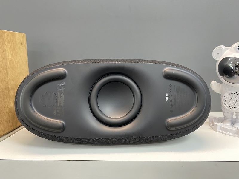 Thiết kế loa bass lộ thiên đánh dưới gầm hệt như những chiếc loa sub điện, giúp tiếng trầm sâu, lực hơn nữa và có độ lan tỏa giúp loa nghe tốt cả trong nhà lẫn ngoài trời. Những bản nhạc mạnh sẽ thực sự hoành tráng và bùng nổ.