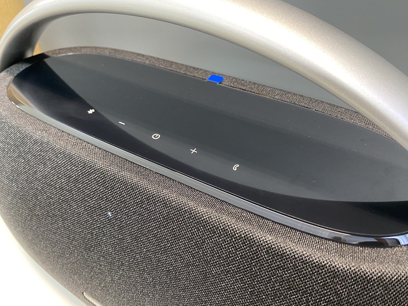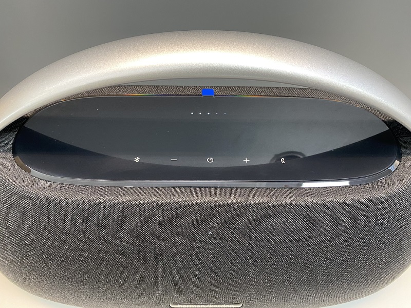 Quai xách làm từ chất liệu nhôm và kéo dài xuống giữa phần thân, tạo ra một thiết kế sang trọng và tiện dụng. Mặt trên của loa được làm từ chất liệu kính và có các nút cảm ứng, bao gồm nút nguồn, nút tăng giảm âm lượng, nút kết nối Bluetooth và nút gọi điện thoại. Đèn báo thời lượng pin trên mặt trên vẫn được giữ lại, giúp người dùng biết được mức pin còn lại.