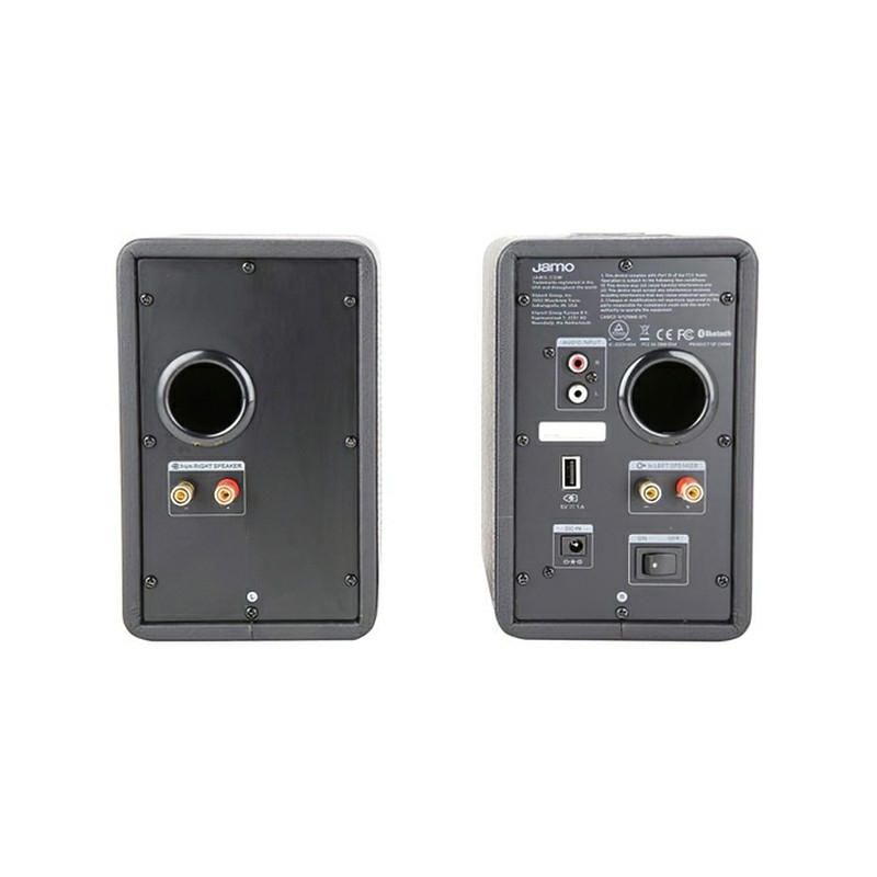 Là dòng loa 2.0 tích hợp âm ly trong với công suất 18w x 2, có khả năng tái tạo âm thanh rất tốt dù kết nối bluetooth không dây, loa thiết kế truyền thống với vân da cao cấp trông rất sang trọng. Hiệu ứng stereo của loa mang lại là rất hiệu quả cho một sản phẩm loa chính hãng Jamo giá rẻ. Loa có khả năng kết nối với tivi, đầu đĩa, thiết bị nghe nhạc, điện thoại hay máy tính nhờ cổng kết nối đa dạng.