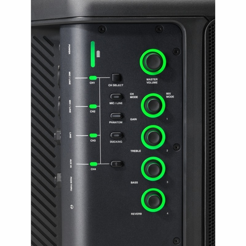 Thiết kế loa này được cài đặt với các đầu kết hợp 1/4/ XLR cùng nguồn ảo 48V. Với bộ kết hợp này, bạn có thể kết hợp tương thích loa cùng các micro tụ. Cổng hi- ¼ cùng đầu cắm phụ 3.5mm cho phép bạn dễ dàng kết nối loa cùng các nhạc cụ và các thiết bị di động. Đặc biệt hơn, tính năng kết nối Bluetooth không dây siêu tiện lợi cho phép bạn phát mọi bản nhạc theo sở thích mà không cần dây cắm rắc rối hay mạng internet.