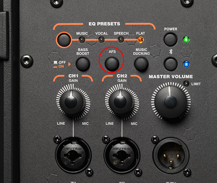 Với bất cứ ai sử dụng loa cũng đều ngại nhất khi loa hú, rít bất ngờ. Với chế độ AFS (Automatic Feedback Suppression) trên siêu phẩm JBL IRX108BT thì bạn chỉ cần bấm 1 nút, tính năng chống hú sẽ được bật và sẽ không còn hiện tượng hú rít khi trình diễn âm thanh nữa. Đây là tính năng được mang từ sản phẩm DriverRack nổi tiếng từ DBX.