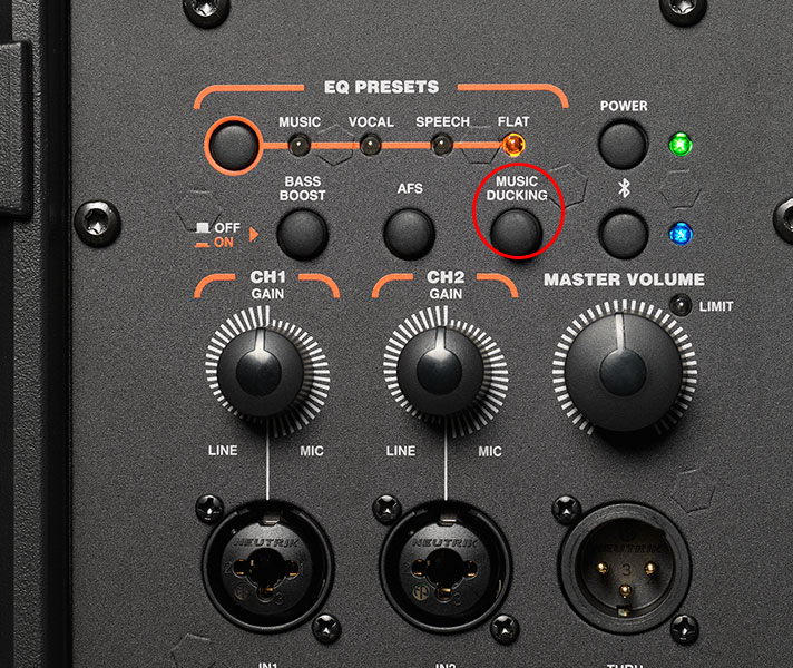 Trong các sự kiện, thường sẽ có nhạc dạo chào mừng và voice chào mừng trên nhạc nền. Thông thường bạn sẽ cần một mixer để điều chỉnh giữa 2 phần âm thanh này. Với Loa IRX108BT, chức năng Music Ducking sẽ tự động tăng giảm âm lượng khi có tiếng nói tự động một cách hiệu quả. Quả là 1 chức năng vô cùng thông minh và hữu ích.