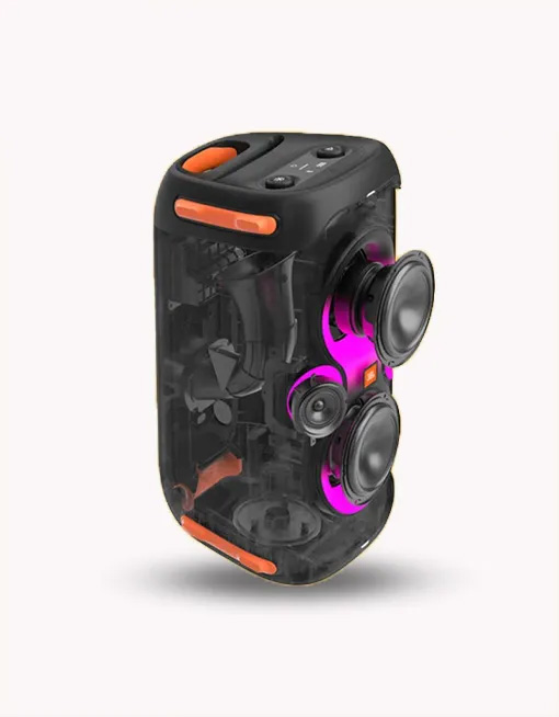 Bên trong JBL PartyBox 110 là công nghệ JBL Original Pro với hệ thống âm thanh 2 đường tiếng với 4 củ loa bao gồm: