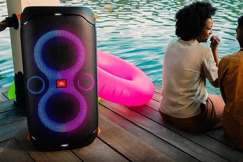 Chỉ cần nhìn qua là bạn có thể thấy loa JBL PartyBox rất nổi bật với thiết kế cực kỳ đẹp với hệ thống đèn LED sáng rực, đa màu sắc. Đặc biệt phần đèn LED này hoạt động dựa theo nhịp điệu âm thanh để bất cứ ai đứng trước nó đều muốn nhún nhảy ngay lập tức. Và bạn có thể điều chỉnh hệ thống đèn này theo sở thích với ứng dụng JBL Partybox có thể tải về trên điện thoại.