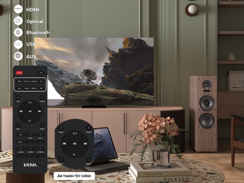Ngoài ra, cổng AUX giúp kết nối với các thiết bị analog như đầu karaoke, đầu phát nhạc hoặc máy tính, trong khi cổng USB cho phép phát nhạc trực tiếp từ thiết bị lưu trữ. Nhờ khả năng tương thích tốt với cả Smart TV và TV truyền thống, Kadma BS66 dễ dàng trở thành trung tâm âm thanh gọn gàng, ổn định cho phòng khách gia đình.