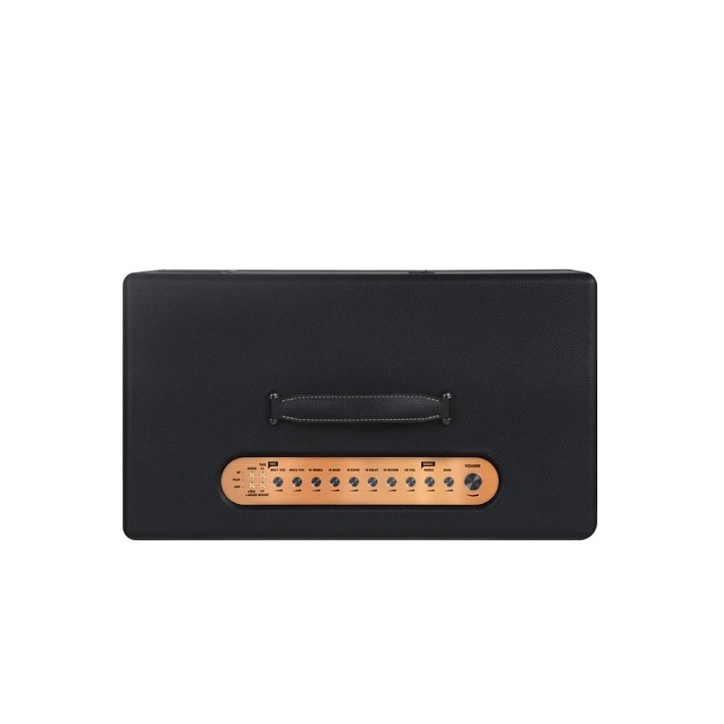 Bảng điều khiển đặt ngay mặt trên loa giúp thao tác nhanh và trực quan. Người dùng có thể điều chỉnh âm lượng nhạc và micro riêng biệt, canh chỉnh chất giọng qua các nút Mic Bass – Mic Treble, tinh chỉnh hiệu ứng bằng Echo, Delay và Reverb. Chế độ Bass Boost tăng cường dải trầm chỉ với một nút nhấn, trong khi công nghệ chống hú Di Tần (FBX) giúp loại bỏ tiếng rít tự động, giữ giọng hát luôn sạch và dễ nghe.