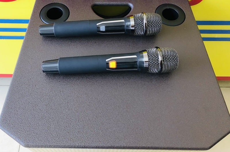 Mic không dây và có 2 đường mic có dây nếu cần.