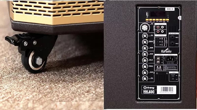 Loa kéo Arirang được trang bị 4 bánh xe bên dưới chịu lực, có thể xoay 360 độ, giúp người dùng có thể mang vác hay đẩy loa đi bất cứ đâu mà không phải gặp bất cứ trở ngại gì.