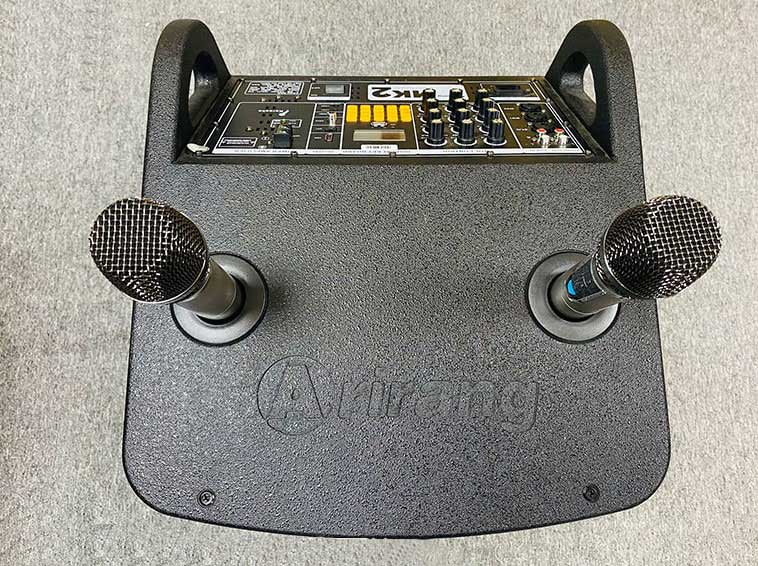 Loa kéo Arirang MK2 đi kèm theo 2 micro sang trọng không dây đẳng cấp với độ nhạy cao hút tiếng cho phép người dùng trải nghiệm hát tuyệt vời nhất. Micro hoạt động với tần số UHF cao để bạn thoải mái thể hiện sở thích, chất âm của mình.