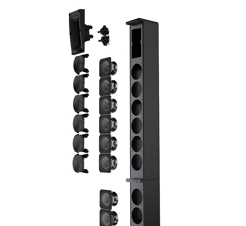 Cột loa làm từ nhôm đảm bảo trọng lượng nhẹ, dễ dàng di chuyển, bên ngoài được phủ lớp sơn bột chống gỉ, chống trầy xước. Hệ thống loa được cấu tạo từ các vật liệu chất lượng cao, không chỉ tăng tính bền bỉ mà còn giúp tối ưu hóa hiệu suất âm thanh.