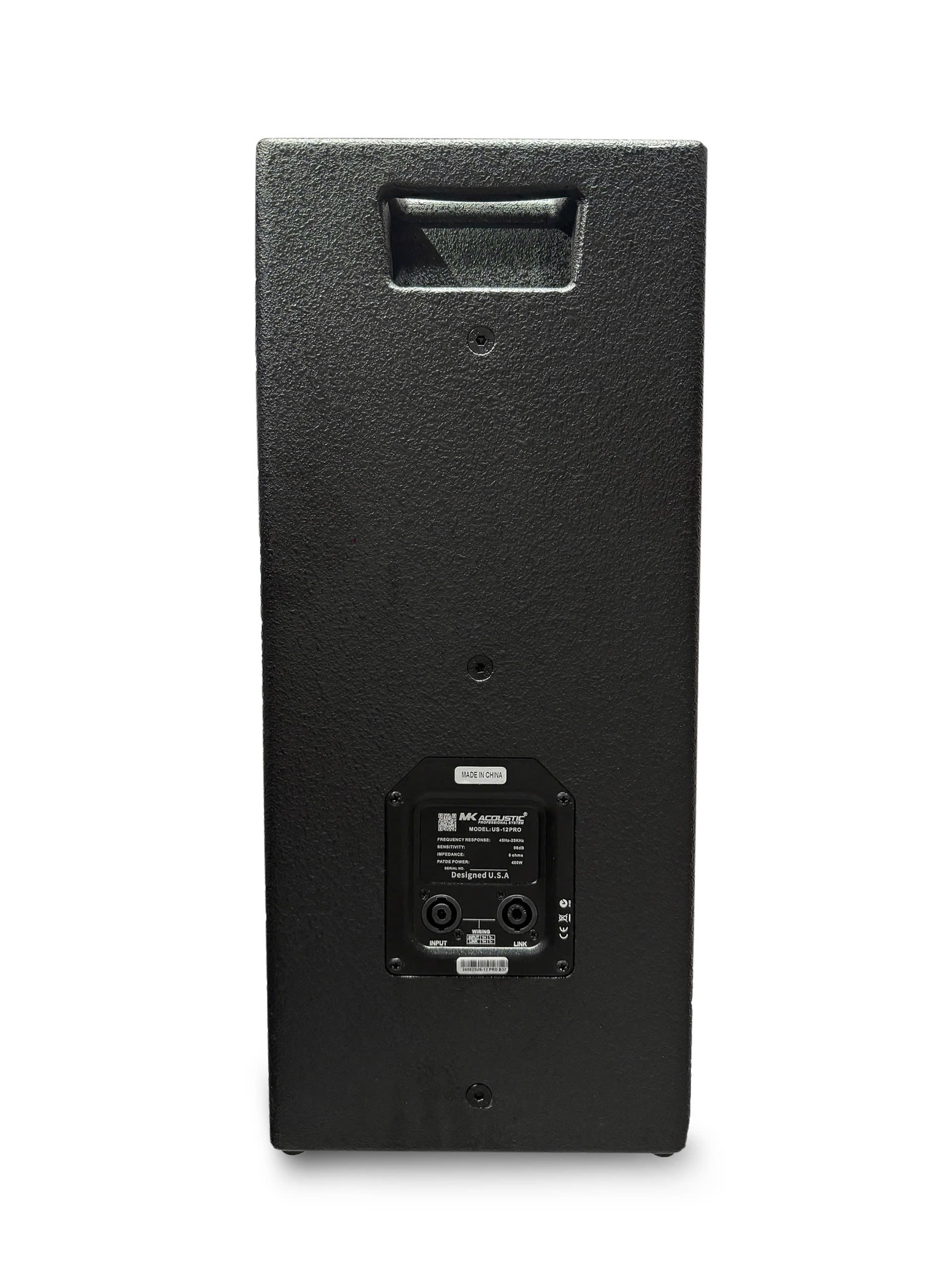 Với kích thước 360 x 600 x 450 mm, cùng trọng lượng 22kg/ loa, MK US-12 Pro có kích thước vừa phải, mạnh mẽ, cùng các góc cạnh vuông vắn và nước sơn đen mịn hiện đại, tông màu đen nổi bật mang lại vẻ đẹp sang trọng, cuốn hút cho không gian âm nhạc của bạn. Nhà sản xuất đã rất cẩn thận khi sử dụng sơn chống trầy, chống xước, giúp tăng độ bền cho loa.