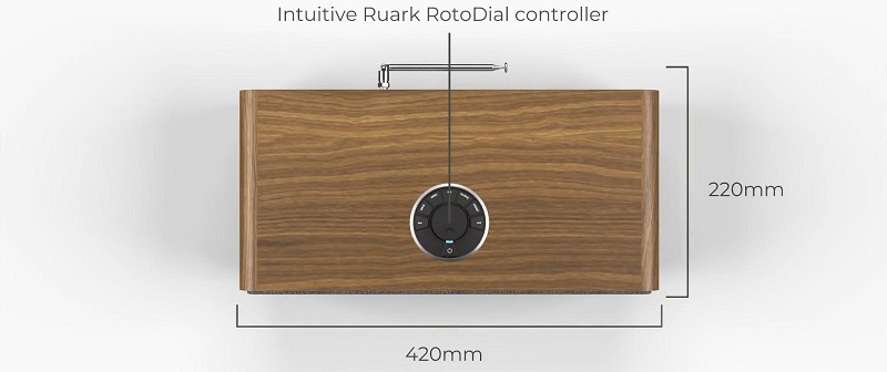 Với kích thước chỉ 420 × 167 × 220mm và trọng lượng 5.3kg, R3S dễ dàng bố trí ở bất kỳ đâu – từ phòng khách, phòng ngủ đến bàn làm việc. Màn hình màu OLED độ tương phản cao hiển thị rõ ràng thông tin, trong khi nút xoay RotoDial đặc trưng của Ruark mang lại cảm giác điều khiển mượt mà, trực quan và đầy hứng thú.
